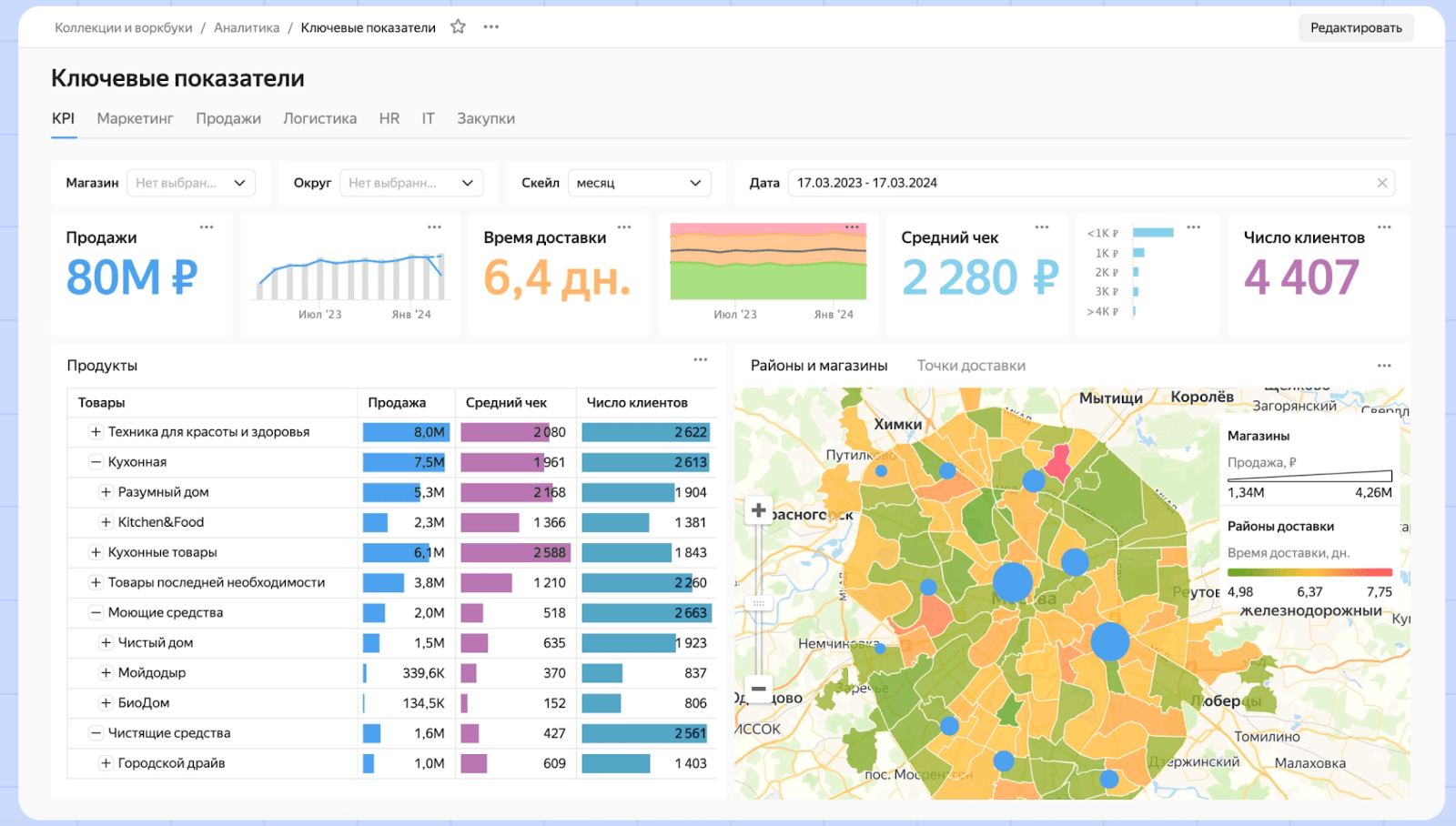 - Data Lens: сервис BI от Яндекса с возможностью собирать вместе и визуализировать данные.