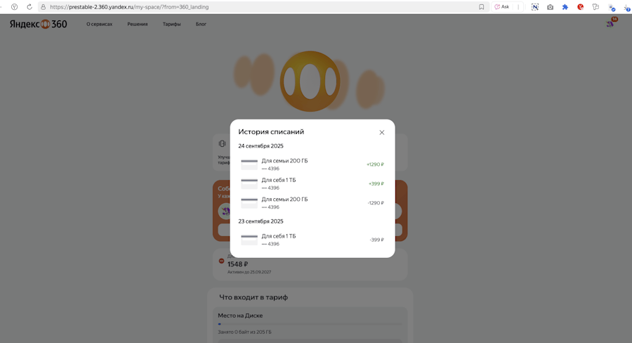 В Личном кабинете пользователи смогут просматривать активные тарифы и объем доступного Диска, отслеживать историю списаний и возвратов, видеть информацию о дате и сумме следующего платежа.