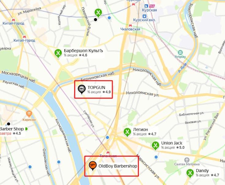 • Зеленая или брендированная геометка выделяет компанию на фоне остальных: