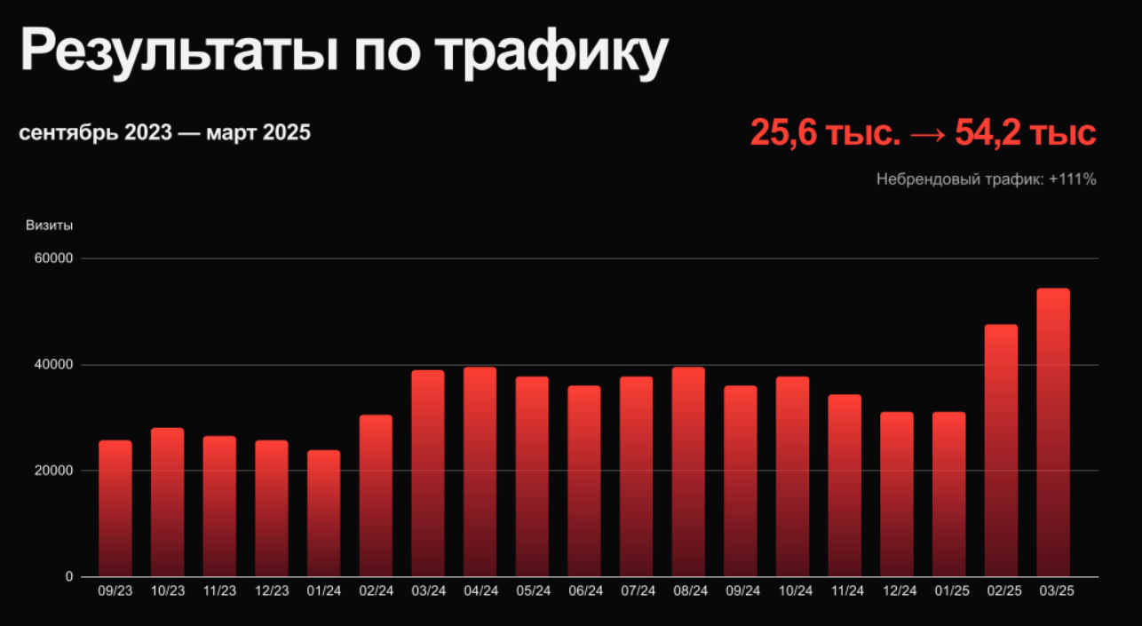 Рост небрендового трафика составил 111%, увеличившись с 25,6 тыс. визитов до 54,2 тыс.