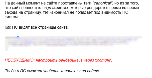 Отрывок из аудита клиенту, где подсвечиваем момент с рендерингом