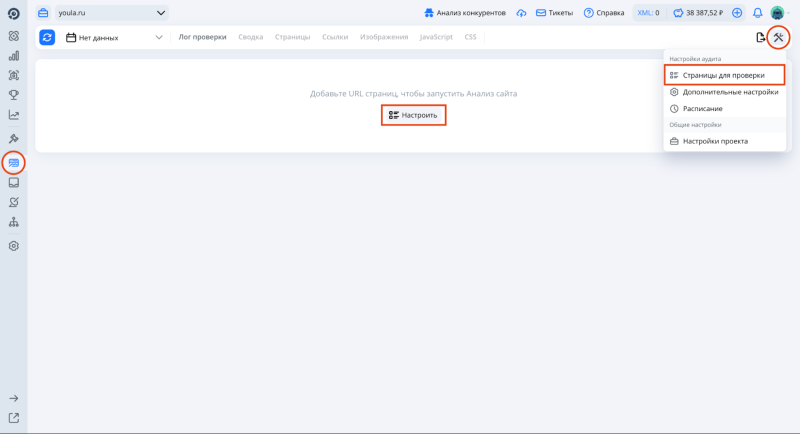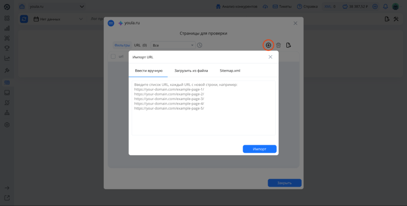 Домен можно ввести в любом формате. В выпадающем списке появится нужный сайт или страница – на него нужно кликнуть.