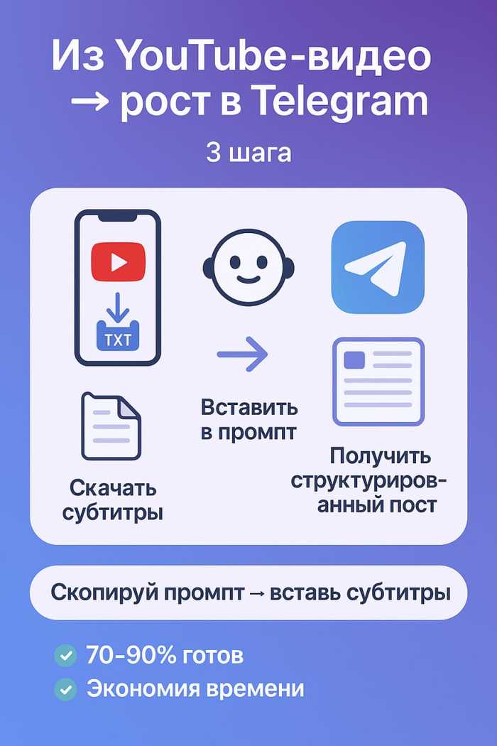 Есть крутое видео с ютуба, хочется сделать из него пост или просто текст для чтения? Но как будто долго, непонятно,…